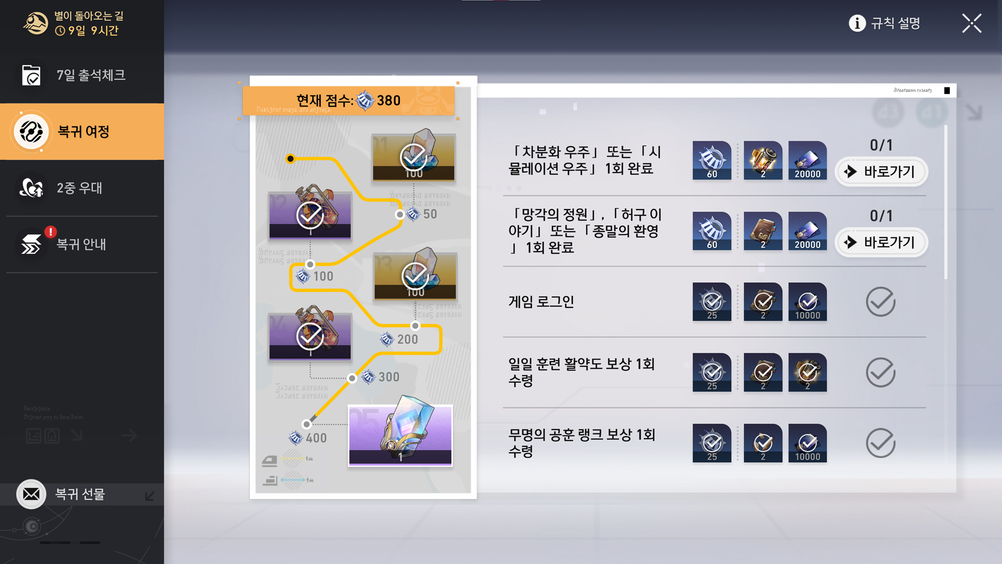 여기까지가 '붕괴: 스타레일'의 복귀 이벤트 구성 내용이다.