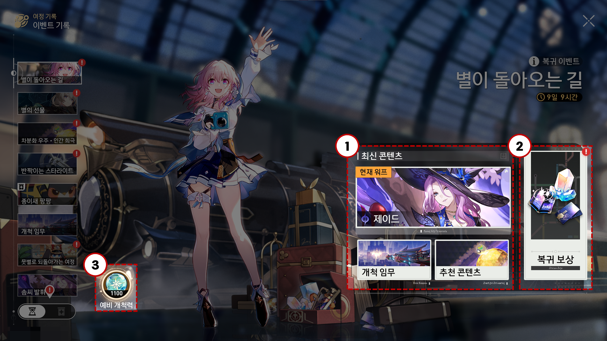 복귀 이벤트, '별이 돌아오는 길' 페이지 2. 복귀 이벤트 페이지 구성
